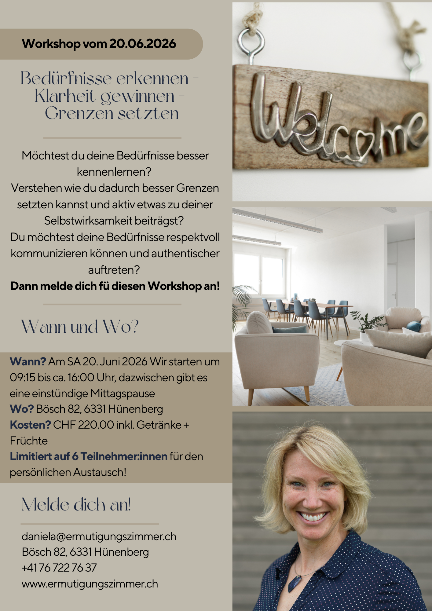 Der Workshop „Bedürfnisse wahrnehmen – Klarheit gewinnen – Grenzen setzten“ findet am 20. Juni 2026 im ErmutigungsZimmer statt.